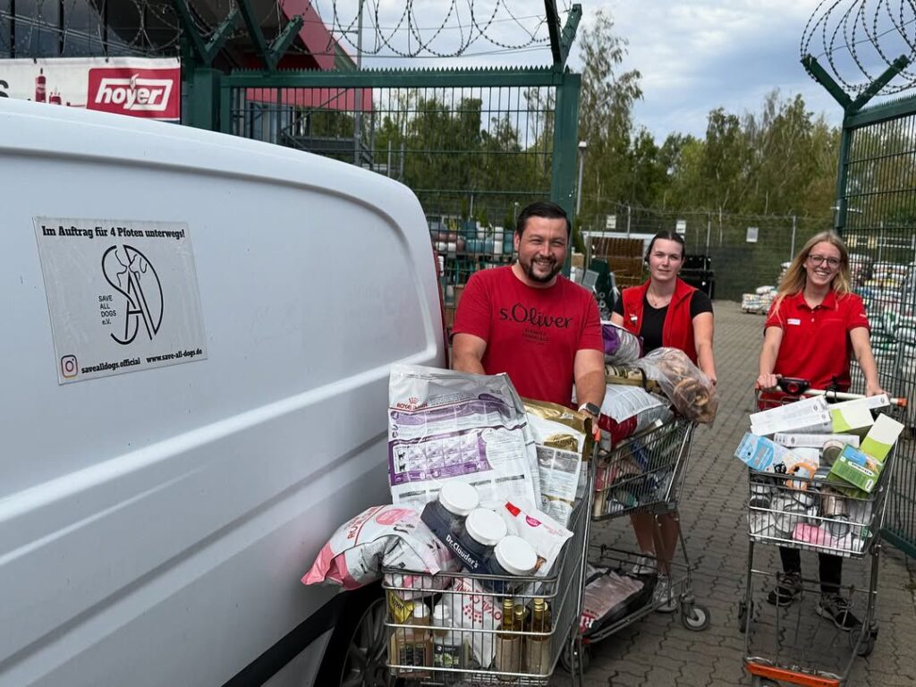 Gemeinsam mit den Mitarbeitern konnten wir gleich drei volle Einkaufswagen mit Hundefutter und Katzenfutter retten, das aufgrund des MHD aussortiert wurde. Statt im Müll zu landen, hilft es nun dort, wo es dringend gebraucht wird!